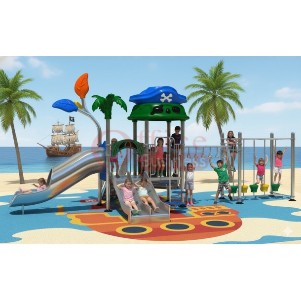 เครื่องสนามเด็กเล่นกลางแจ้งสแตนเลส ชุดหอโจรสลัดผจญภัย ขนาด 770 x 950 x 390 ซม.