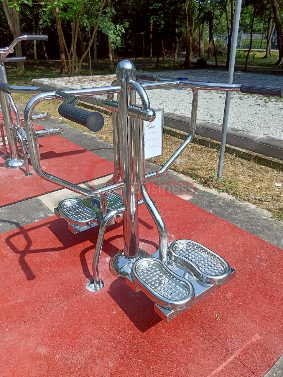 อุปกรณ์แบบจักรยานนั่งตรงปั่นเบา 2 สถานี แบบสแตนเลส