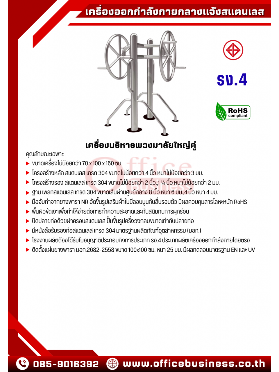 เครื่องบริหารบาร์ยกตัวจานหมุน 2 สถานี แบบสแตนเลส พร้อมพื้นยางนวัตกรรมไทย 10 มม.