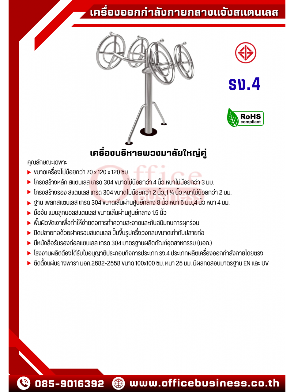 อุปกรณ์บริหารข้อสะโพก (แบบบิดเอวเดี่ยว) แบบสแตนเลส