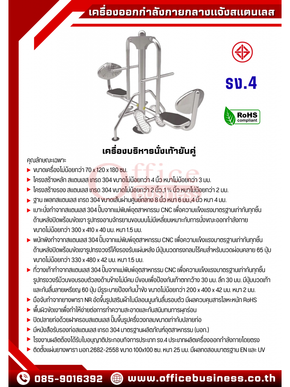 อุปกรณ์ก้าวย่ำบริหารขา 2 สถานี แบบสแตนเลส