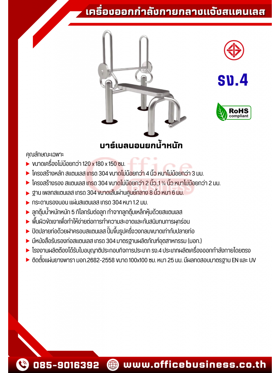 อุปกรณ์บาร์นอนยกน้ำหนัก สแตนเลส 4 นิ้ว หนา 3 มม. พร้อมแผ่นยางพารากันกระแทก (มอก.) 100x100 หนา 25 มม.