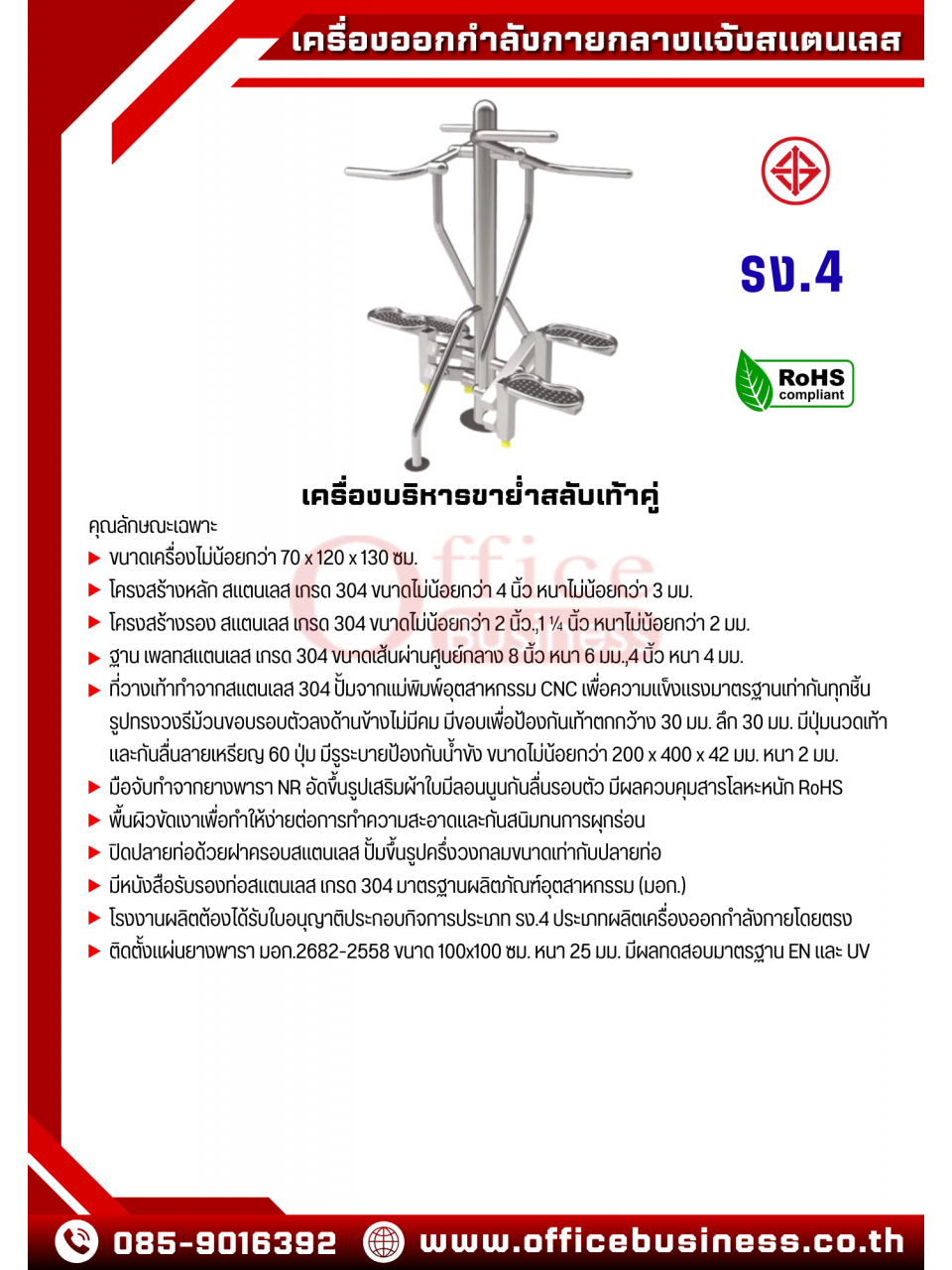 อุปกรณ์บริหารสะโพก-หัวไหล่ (แบบโยก-เดินสลับเสาคู่) แบบสแตนเลส