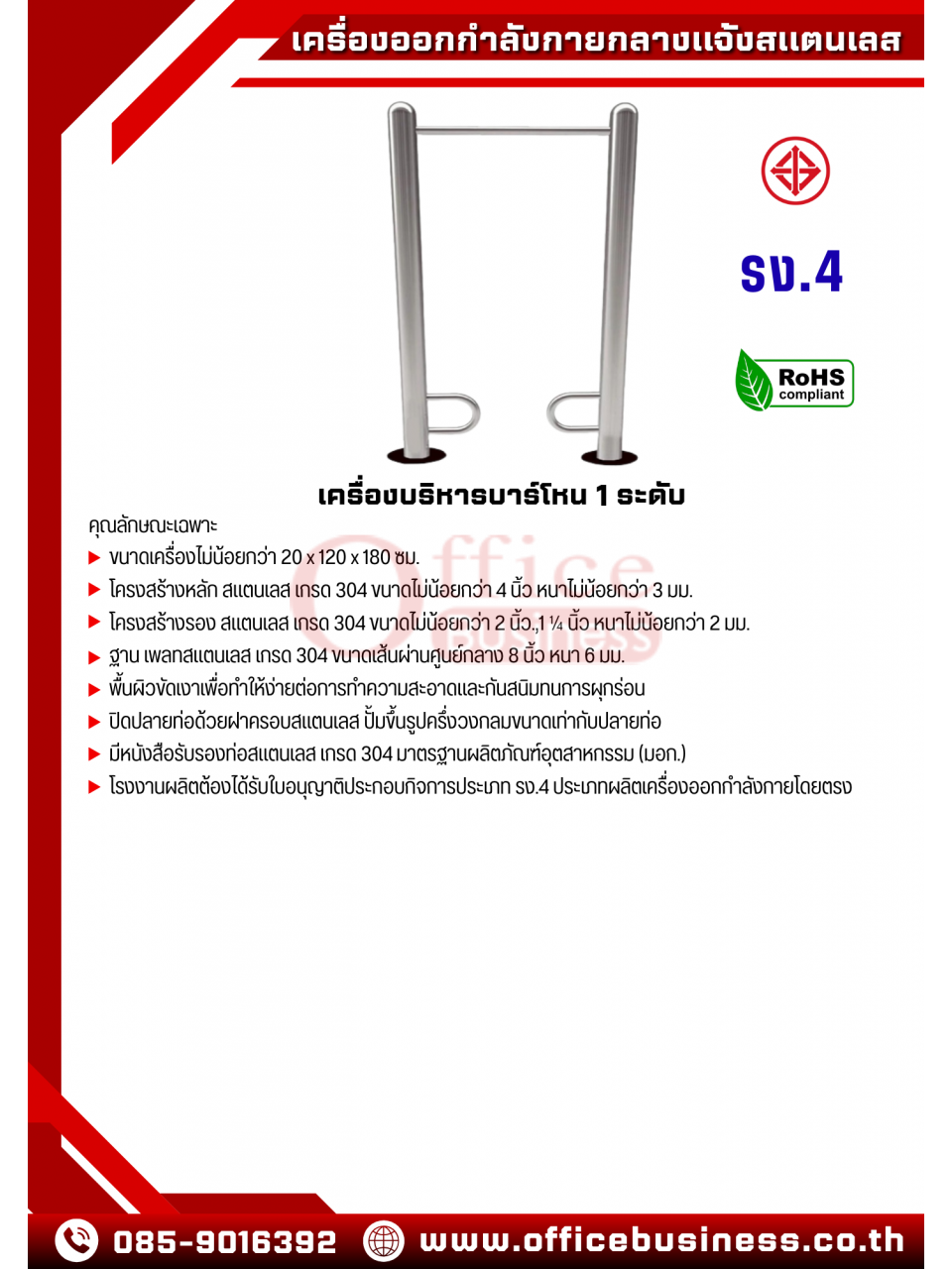 FIT-68 อุปกรณ์บริหารแขน-หัวไหล่(แบบบาร์ยกตัวคู่) โครงสร้าง 2.5 นิ้ว