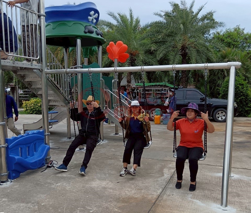 เครื่องสนามเด็กเล่นกลางแจ้งสแตนเลส ชุดหอผจญภัยไดโนเสาร์เพื่อนหมี