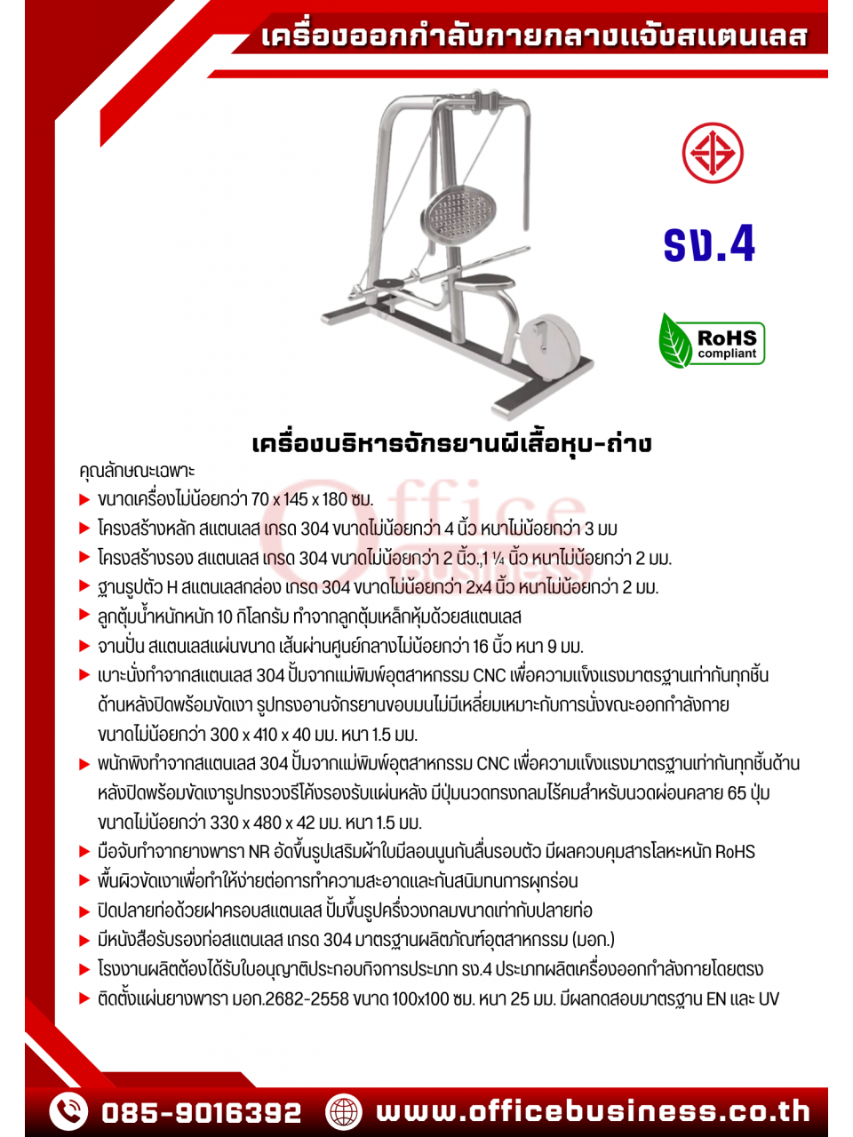 FIT-50 อุปกรณ์บริหารแขน-หน้าท้อง(แบบดันกรรเชียง) โครงสร้าง 2.5 นิ้ว