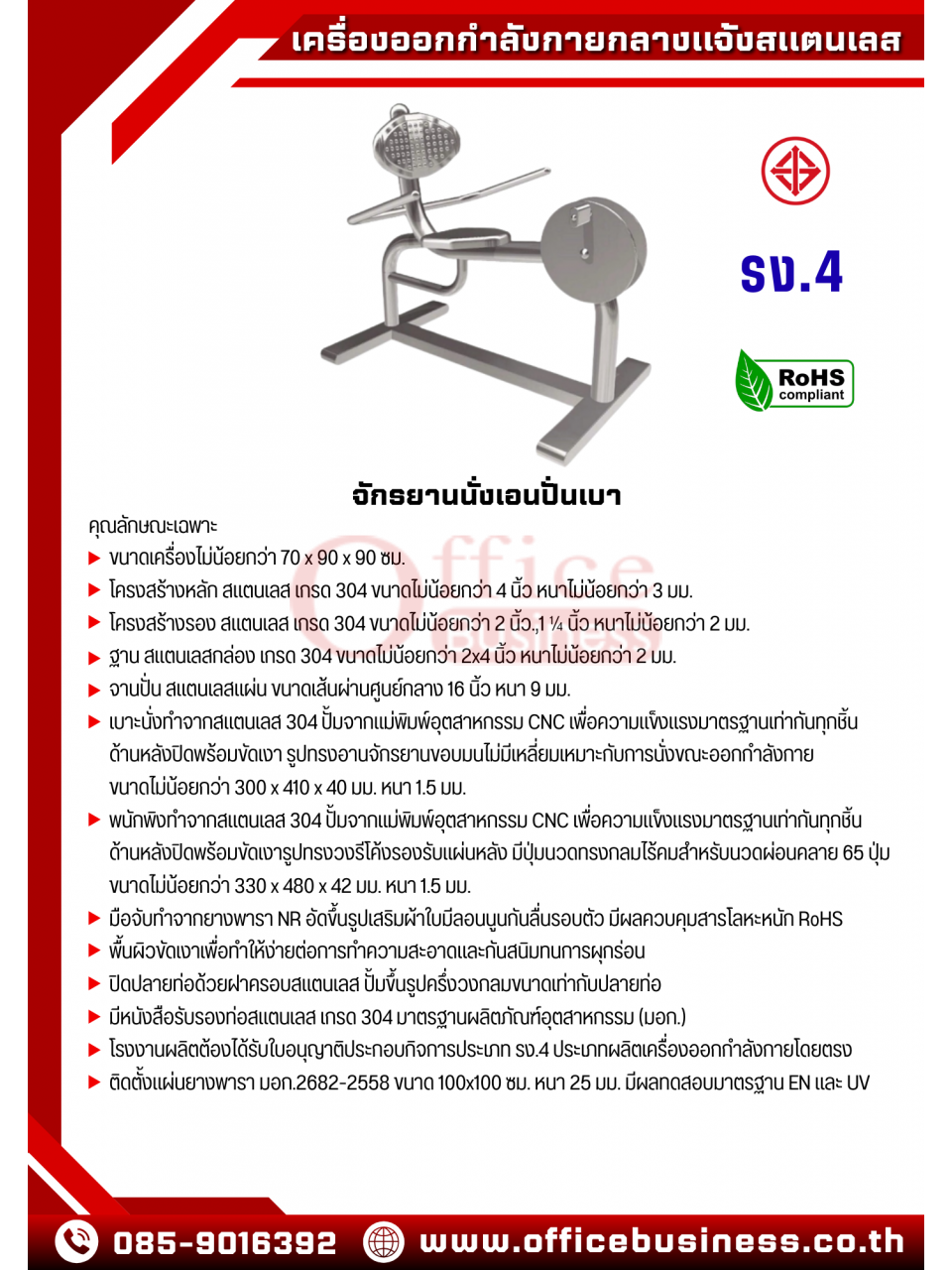อุปกรณ์บริหารขา-เข่า (แบบปั่นจักรยาน) สแตนเลสเกรด 304 โครงสร้าง 2.5 นิ้ว
