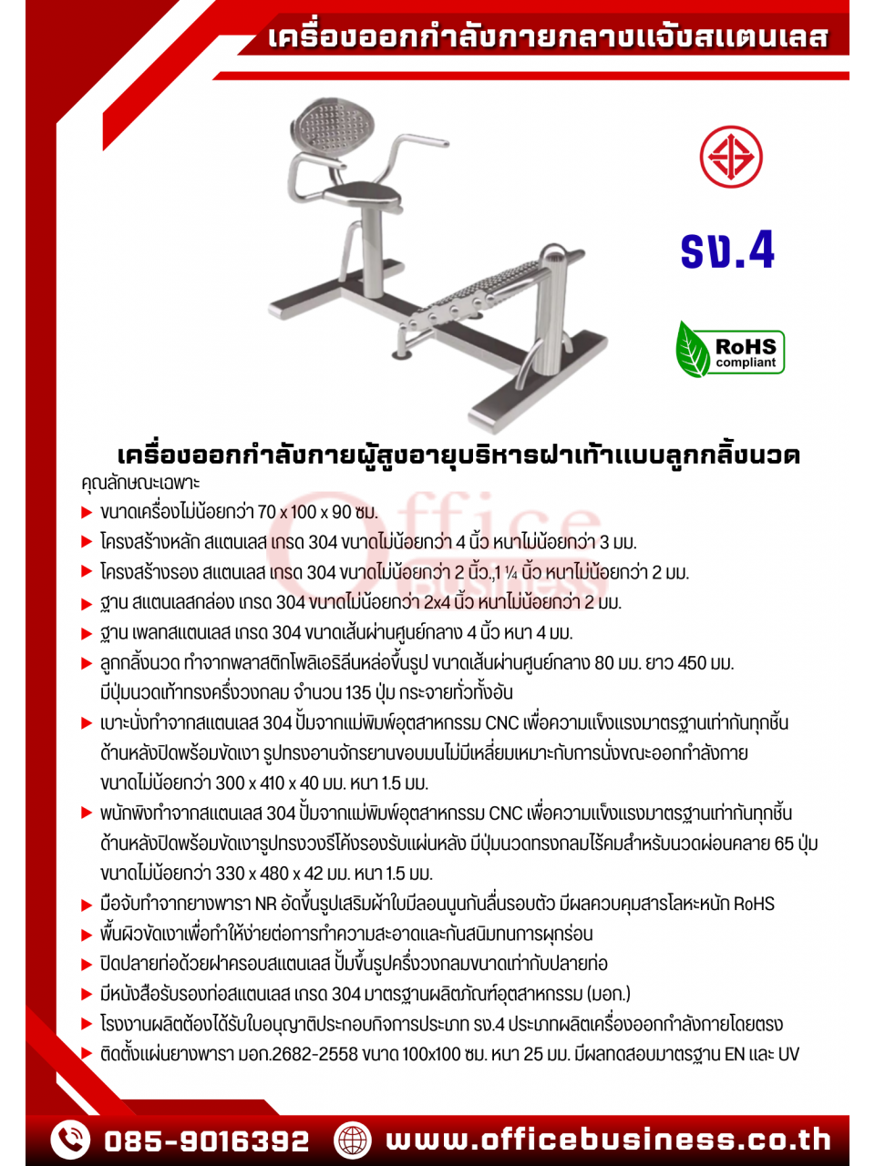อุปกรณ์บริหารขา-เข่า (แบบปั่นจักรยาน) สแตนเลสเกรด 304 โครงสร้าง 2.5 นิ้ว