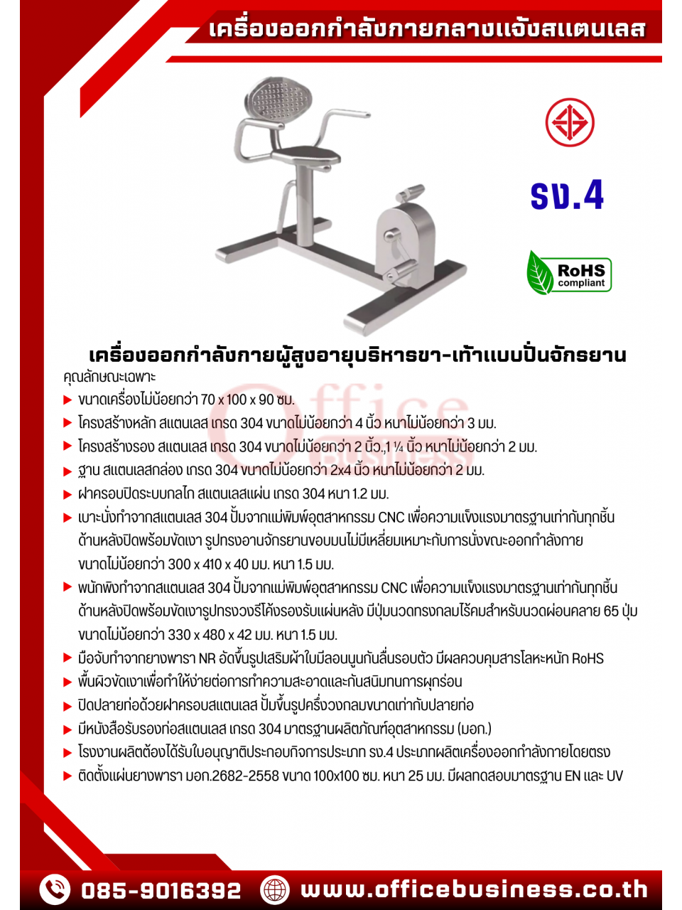 อุปกรณ์บริหารขา-ข้อเข่า-ข้อเท้า(แบบนั่งเอนปั่นจักรยาน) แบบสแตนเลส